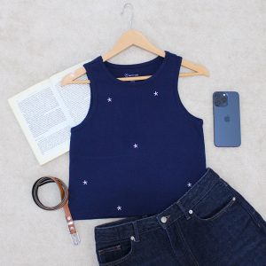 تاپ بیسیک کبریتی با این کیفیت و گل های مینیمال قشنگش🕊️🌱✨ جنسش کشباف فری سایز از۳۶ تا ۴۴ دورسینه بدون
